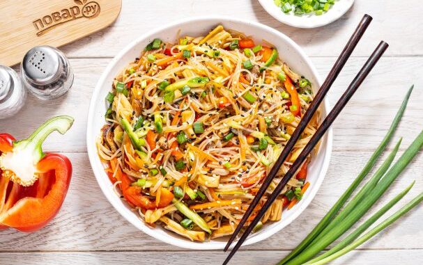 Ниже я расскажу подробнее, как приготовить фунчозу с вешенками и овощами. Из овощей также можно использовать кабачок или цукини, стручковую фасоль или спраржу, а также мини кукурузу. В заправку для сливочного вкуса можно добавить арахисовую пасту (без сахара), а из зелени использовать также кинзу и петрушку. Блюдо особенно понравится тем, кто любит азиатскую кухню.