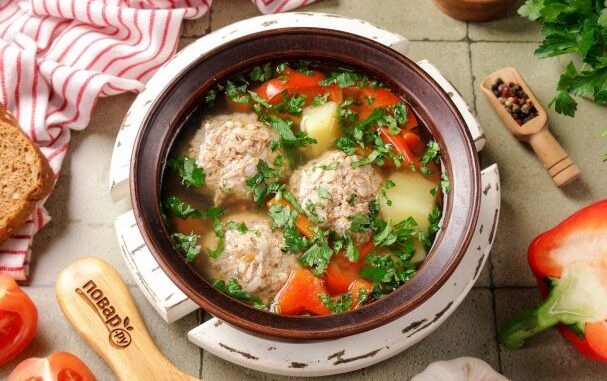 Для приготовления этого блюда берут баранину с добавлением курдючного сала, получается довольно сытно и калорийно. Я немного изменила рецепт и предлагаю приготовить гупту из говядины. Мой вариант менее калориен, но такой же невероятно вкусный и ароматный! Такой супчик хорош и после праздников, и в конце тяжёлого рабочего дня. Очень оживляет, придаёт энергии и сил! Из специй в оригинальном рецепте предлагают использовать корицу, гвоздику молотую, перец, эстрагон сушёный, чабер и лавровый лист, я же взяла только смесь специй для говядины и щепотку зиры. Вы можете добавить в фарш специи на своё усмотрение.