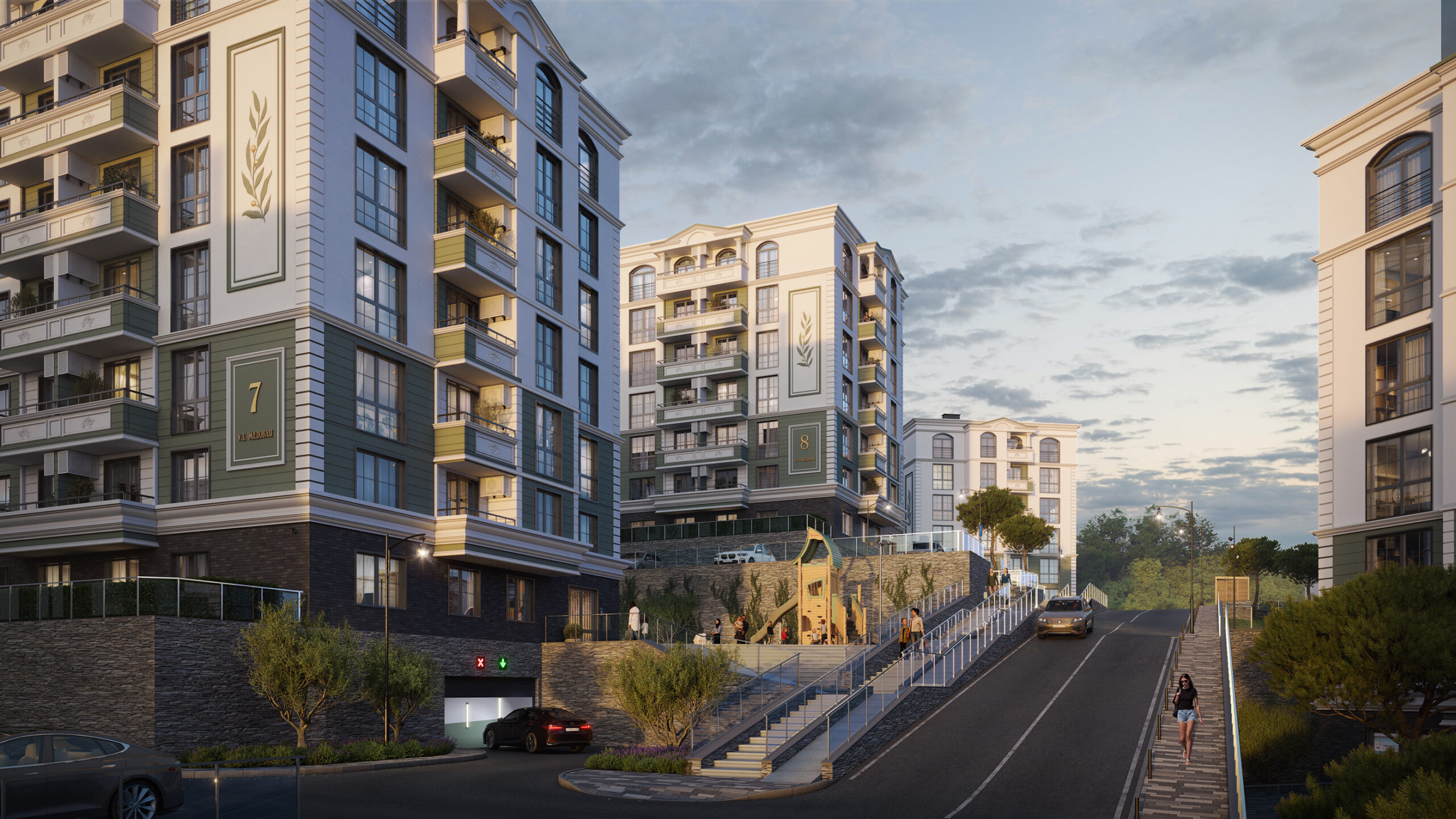 • Парковка: Подземный или наземный паркинг для автомобилей жителей комплекса.