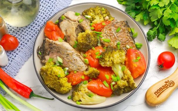Карп, тушенный с овощами