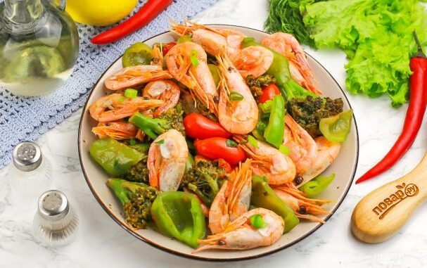Креветки с овощами