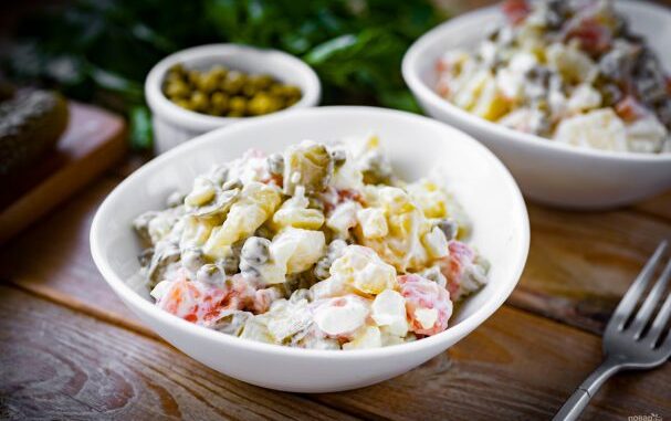 При желании соленые огурчики можно заменить на свежие. Обязательно приготовьте "Оливье" по этому рецепту и порадуйте родных вкусным блюдом на ужин.
