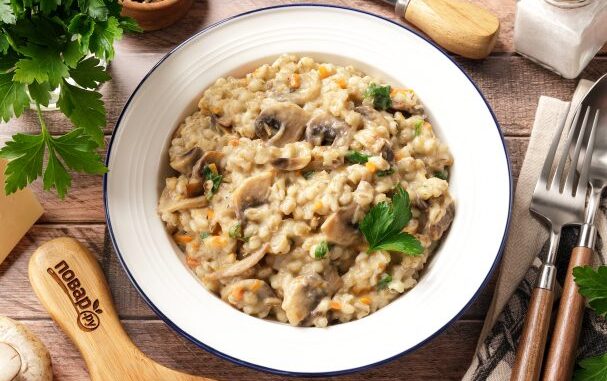 Готовить перлотто лучше всего в казанке, утятнице или в любой посуде с толстым дном. Так и крупа приготовится быстрее, и получится намного вкуснее и ароматнее. Куриный бульон можете заменить на любой другой или воду. Если есть возможность заменить шампиньоны на лесные грибы — заменяйте, подойдут как свежие, так и замороженные. С белыми блюдо получается просто божественным! В оригинальном варианте название звучит как «Орзотто», перлотто — это вольный перевод, адаптированный для русского языка. Сочетание итальянского названия перловой крупы (orzo brillato, perlato) и итальянского блюда «ризотто», подразумевает определенный способ приготовления риса с разными добавками. В перлотто, как и в ризотто — всё почти так же, только вместо риса возьмём перловую крупу.