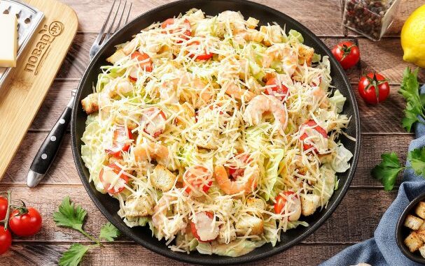 Назначение: На ужин / На праздничный стол Основной ингредиент: Рыба и морепродукты / Морепродукты / Креветки Блюдо: Салаты / Салат Цезарь
