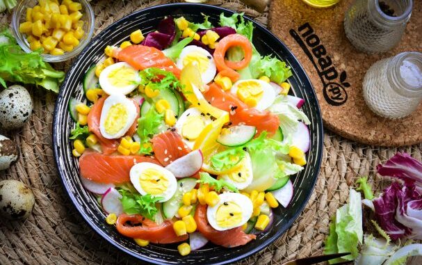 Как приготовить «Салат с кукурузой и слабосоленой семгой»