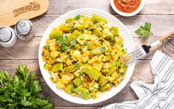Зеленую стручковую фасоль отварите на пару 5-6 минут.