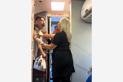 Когда герой ролика добирается до бортовой кухни, он начинает кричать в лицо стюардессе. Невозмутимая бортпроводница в ответ продолжает подталкивать агрессивного пассажира к выходу со словами «вон из моего самолета!» Однако Джонсон отказался выходить из салона и закричал: «Я воин!», обвинив членов экипажа в нападении.